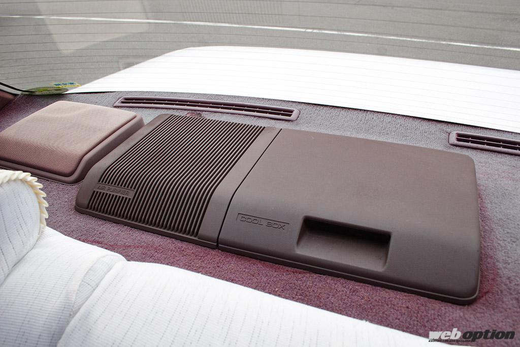後席センターアームレストにはオーディオスイッチが内蔵される。メイン電源のオンオフ、ラジオバンドの切り替え、カセットプレイヤー操作、ボリューム調整、ミュートが可能。