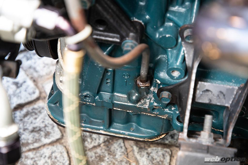 ブロック脇に装着されていた、純正の機械式エアコンコンプレッサーは当然キャンセル。ベルト駆動による物理的なコンプレッサー抵抗がなくなるため、パワーロスの低減&燃費の向上も見込める。