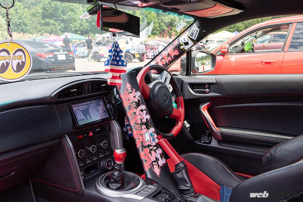 カスタムベースとして高い人気を誇る86&BRZで、ここまで個性的に仕上げられた車両は珍しい。ノーマル状態から仕様変更を何度も繰り返しながら現在のスタイルに辿り着いたそうだが、オーナーの感性とカスタム魂には感服するばかりだ。