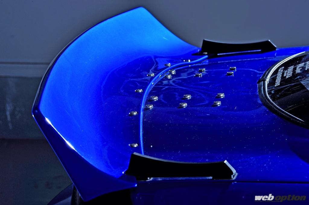 リヤウイングは、以前は大型のGTウイングだったが、よりストリートを意識した形状を求めてロケットバニーのダックテール型スポイラーへとスイッチした。カーボンのディフューザーはワンオフだ。