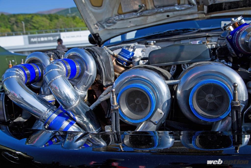 この「CIRCUIT &DREAMS CLR SILVIA」と名付けられた魔改造シルビアのコア技術は、やはりターボレイアウトだろう。3.1L仕様のフルチューン2JZにT88-34DとTD06-17Cをそれぞれ2機ずつマウント、つまりは4ターボ仕様なのである!