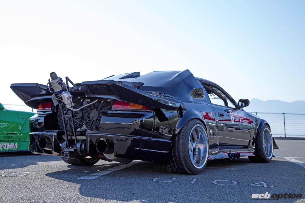 この「CIRCUIT &DREAMS CLR SILVIA」は車両完成後も継続的にアップデートを続け、最終的にはラジコンヘリ用のジェットエンジンを天に向けて噴射するという、独自のジェットトラクションシステムまで搭載。全てが規格外。キャロラインレーシングというチューニングショップのコンセプトや考え方がよく分かるデモカーと言える。