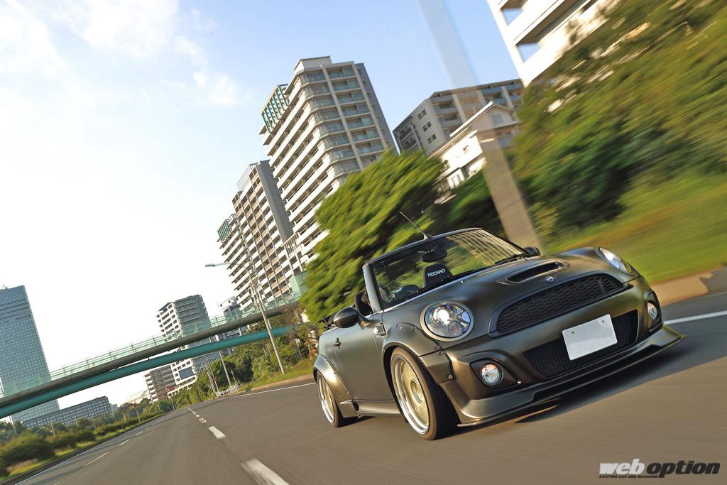 続けて「リバティウォークのアイデンティティとなっているワークスフェンダーはミニにもよく似合っていて狙い通りだと思います。ただし、本来は3ドア用に開発されているキットなので、コンバーチブルにはトランクウイングが装着できなかったりして、その部分はウチのオリジナルとして製作しています」。