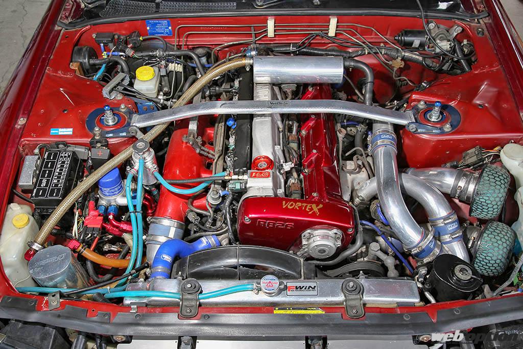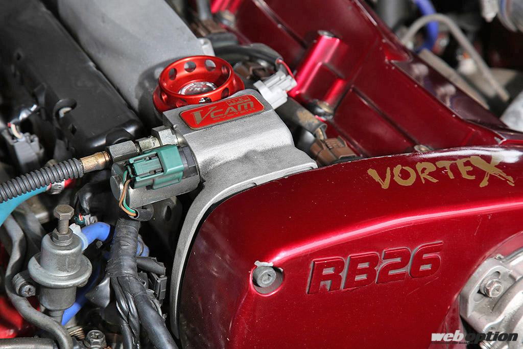 サーキット走行を繰り返しながらアップデートを重ねたエンジンは、本体ノーマルのままHKSのGT2530タービンやVカムを組み合わせた613ps仕様だ。冷却系には、水とエタノールを混合した液体を燃焼室に噴射することで燃焼室温度を下げる“ウォーターインジェクション”も装備。エンジンマネージメントは、F-CON Vプロのバージョン4.0が担う。