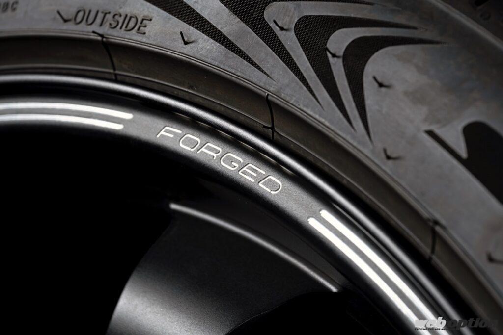 このモデルは、WEC LMP-1用やスーパーGT500クラス用ホイールの開発で培った最新の解析技術が惜しみなく投入され、限界まで攻め込んだと思われていた駄肉処理を再検証。その結果、スポーク間に新たなマシニング加工を追加し、強度・剛性は犠牲とせず1箇所10グラム、トータル60グラムの軽量化を勝ち取ることに成功したライトウエイトスペックだ。