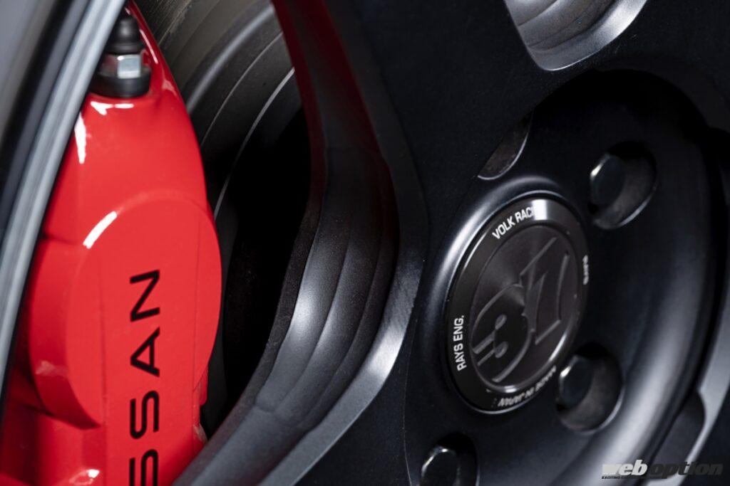 サンプル車のRZ34(トラストデモカー)が履くサイズは、フロント19×9.5J+22、リヤ19×10.5J+22。これにダンロップのSPスポーツMAXX060+(F255/40-19 R275/35-19)を組み込む。タイヤサイズはバージョンS/ST純正とイコールだ。