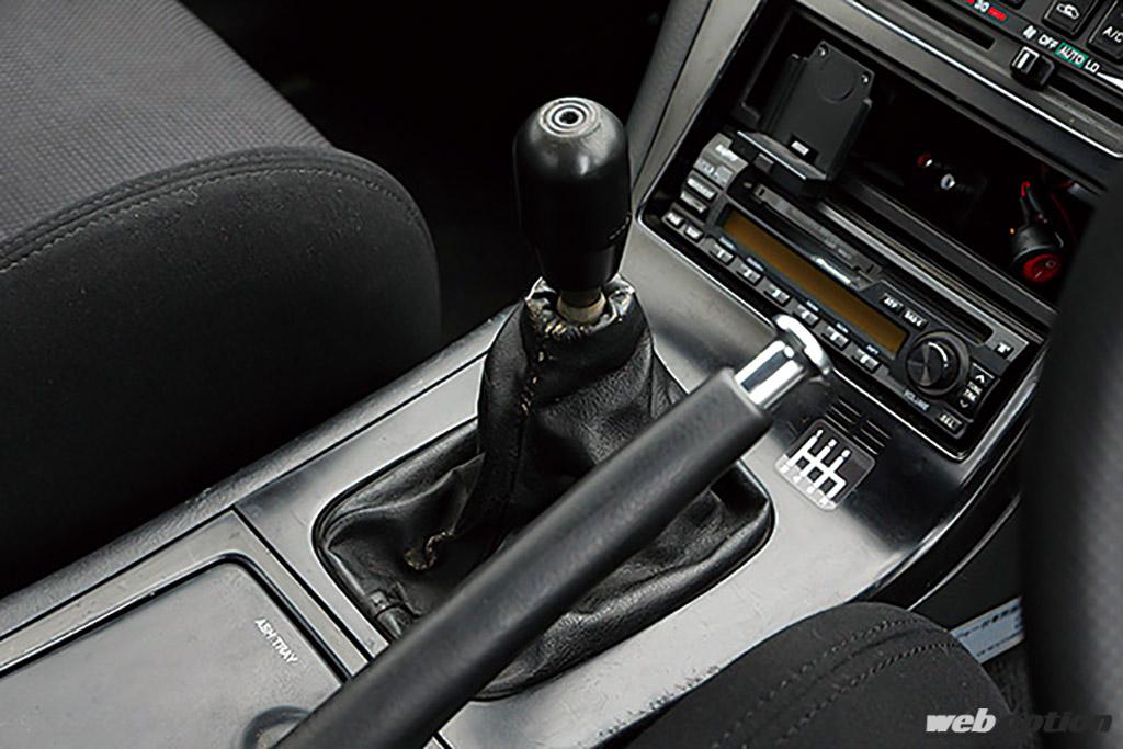 シルビアコンバーチブルはオートマ仕様のみのため、ミッションはエンジン換装に合わせてS15用の6速MTに載せ換えた。意外にも加工せずにそのまま載せるだけで、シフトレバー位置もバッチリ合ったという。