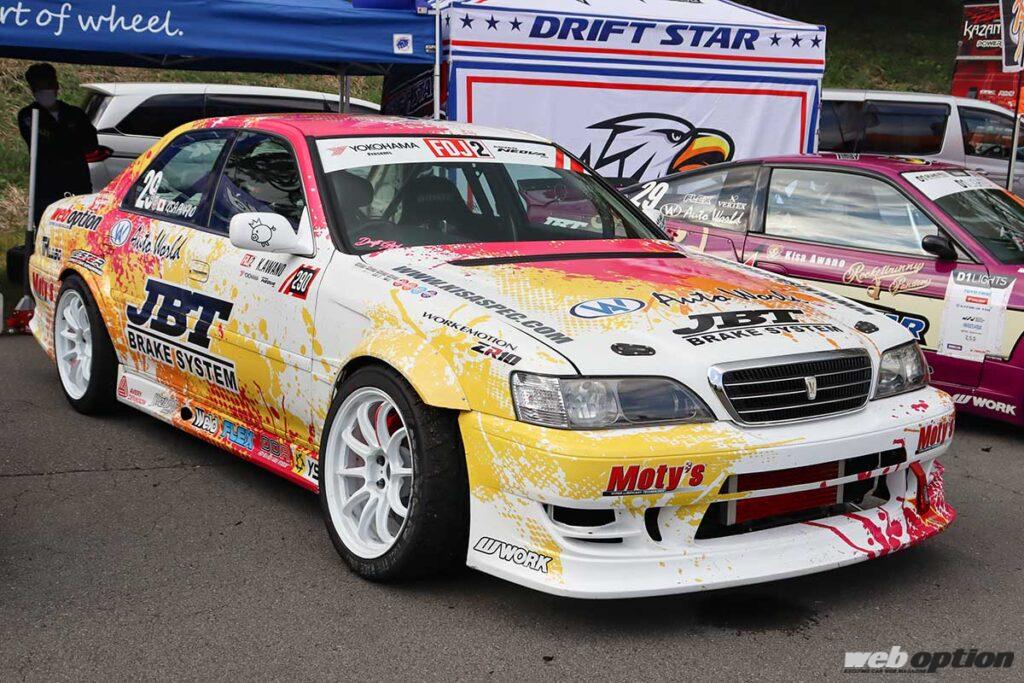 私はWORK Wheelsブースからゲストドライバーとして参加させていただきました。大会参戦車両であるキサエイティことPandem 180SX(1JZ搭載)と、ももクレちゃんことJZX100クレスタ(2JZ搭載)の2台も一緒! 本当にありがとうございました!
