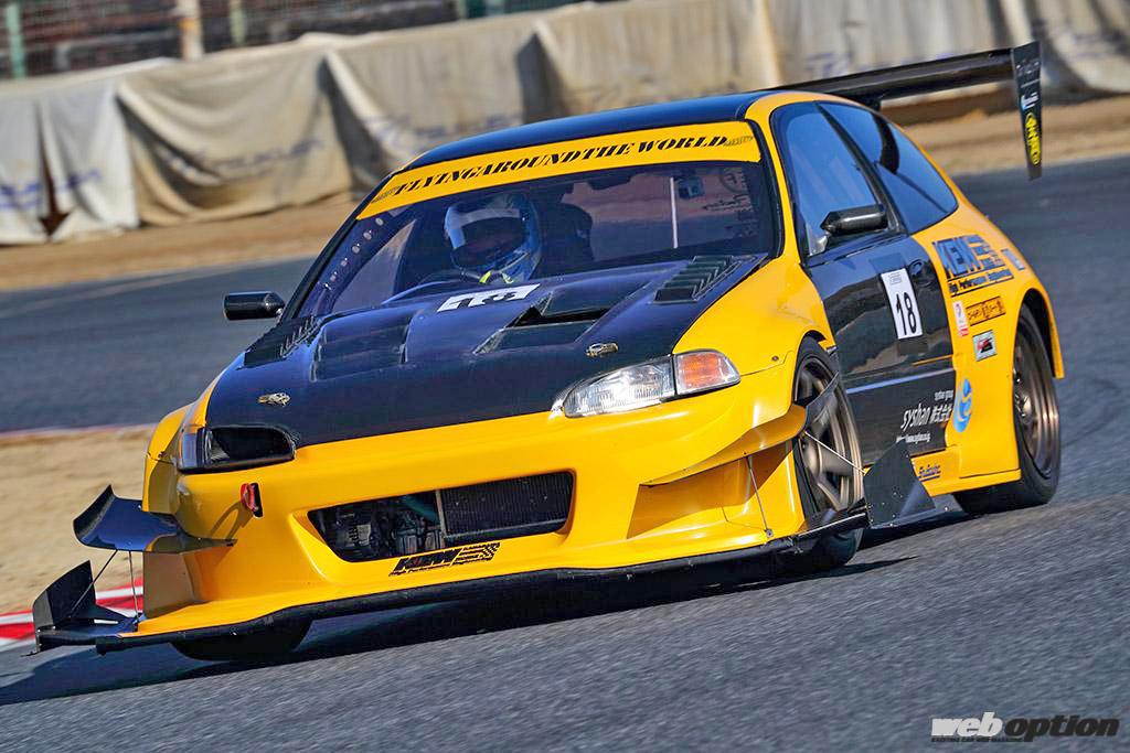 車高は全開走行に支障がないギリギリの低さで設定。超ローフォルムと見慣れない深リムホイールの組み合わせはインパクト抜群で、シビックらしからぬロー&ワイドを実現している。