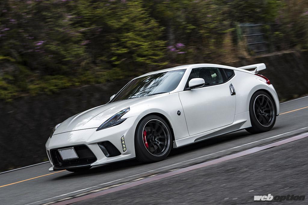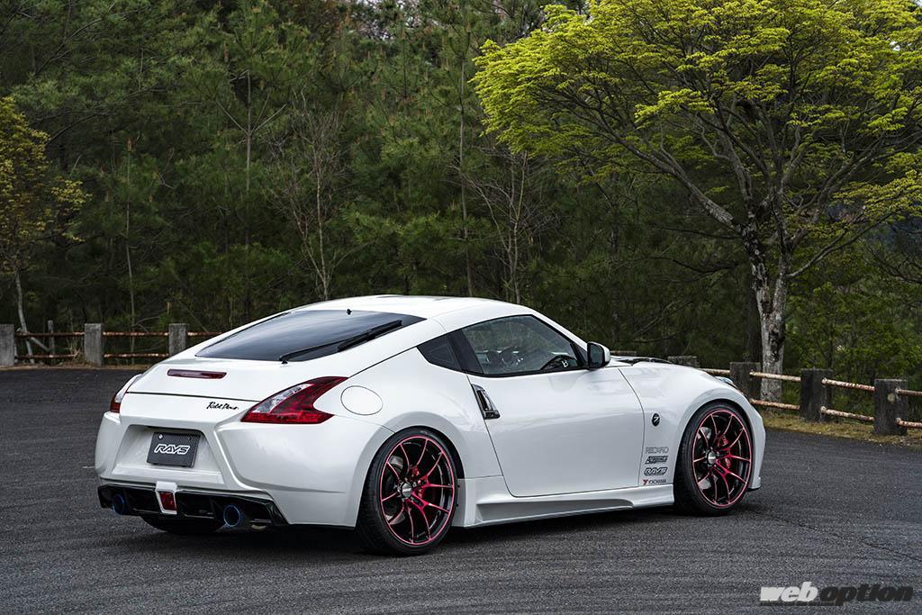 なお、撮影車両はフジムラオートのデモカーで、美しさと機能を双方で高め上げたオリジナルのロケットダンサーエアロで武装。走りに特化するならGTウイングなど空力重視でエアロパーツは大型化していくが、フジムラオートはベーススタイルを際立たせるアダルトスポーティなデザインでZ34をブラッシュアップしている。