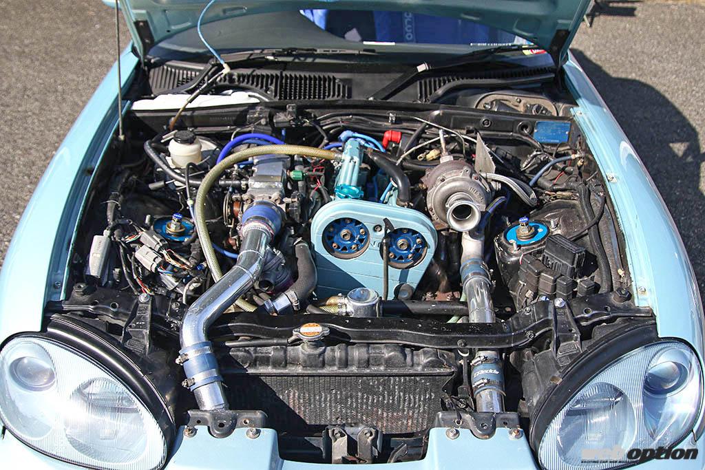 美観にも拘っており、日産のオパールブルーに全塗装されたボディに合わせて、ヘッドカバーやゴムホースなども青系で統一。バンド類も全て同じ方向で揃えられ、美しい仕上がりを誇る。