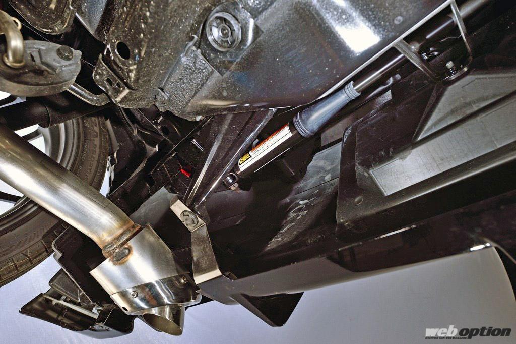 フロントはサスペンションメンバーのロアアーム取り付け部近辺を繋ぎ、リヤ側はフレーム後端を結ぶ形で装着する。