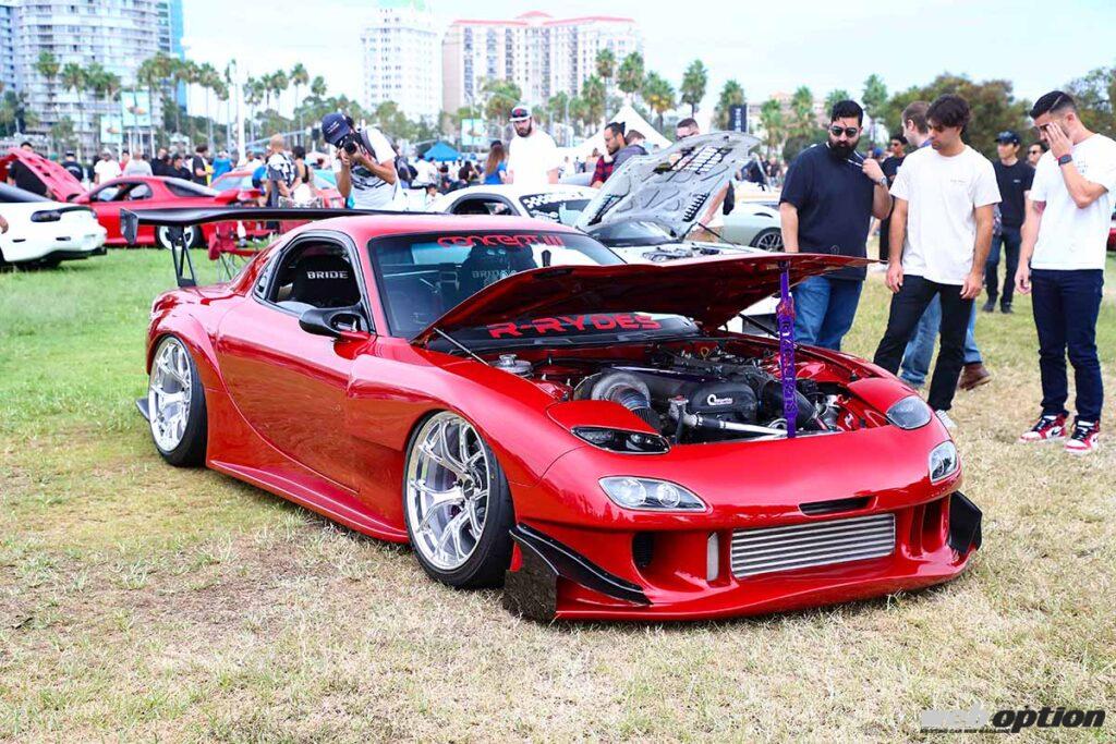 13B-REWロータリーエンジンを降ろして、1JZ-GTE型直6ターボに換装したFD3S。トランスミッションには日産のZ33などに使用されるCD009型6速MTを合体してある。RE雨宮のボディキット、Driftzのホイール、R1コンセプトのビッグブレーキを装着し、チタン製の大径マフラーも装備。車高はエアサスで落としてあり、ショー映えするスタンスを生み出している。
