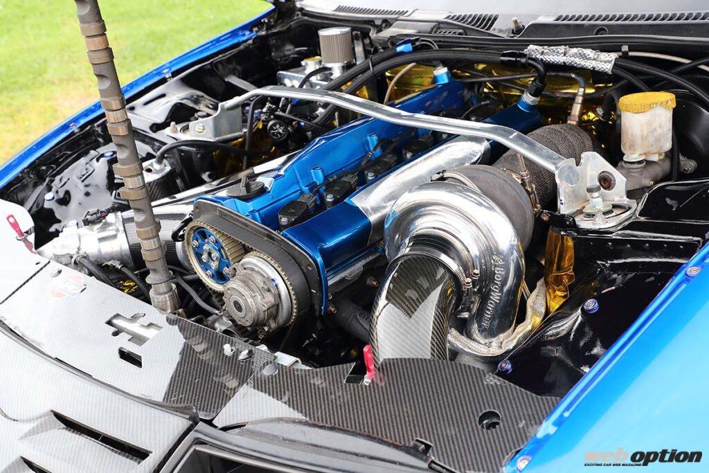 アメリカでは2.4LのKA24DE型直列4気筒エンジンを搭載するS13型のシルビア(車名は240SX)。それをターボ&ダイレクトイグニッション化するとともに、オリジナルのサイクルフェンダーを備えた美しいエンジンルームを実現。アメリカでも割と外観の美しさを度外視して走りに振った車両も多い240SXだが、これほど隅々まで手が加わったショーカーレベルのクルマは珍しい。