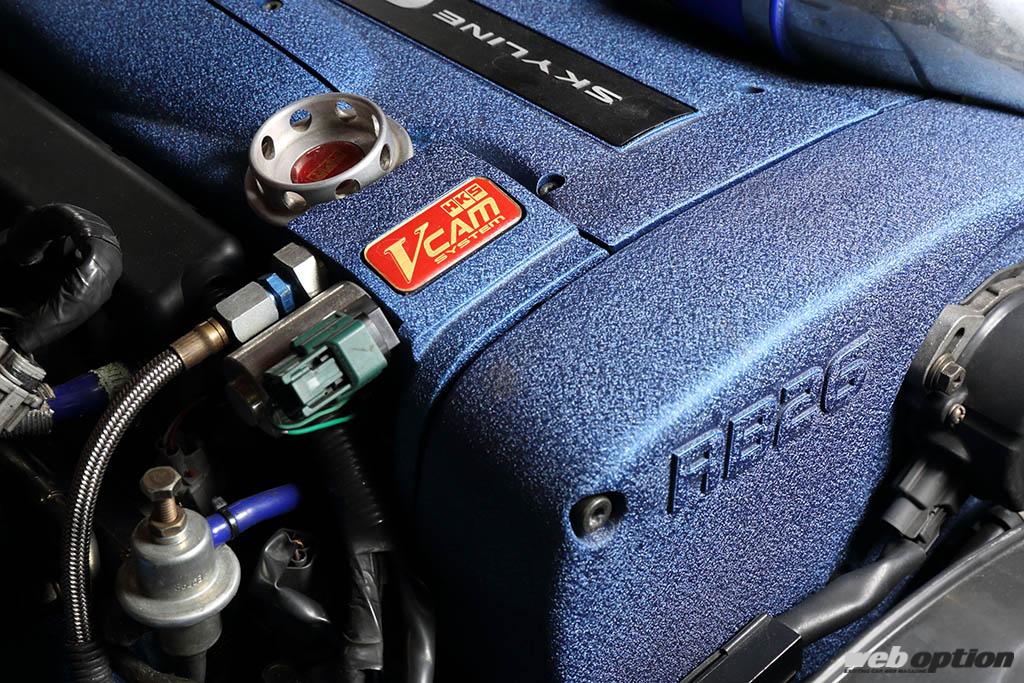 低中速トルクを補うためのアイテムはこれだけではない。ヘッドにはRB26チューンに革命をもたらしたHKS製Vカムをセットして可変バルタイ化。2.8L化との合わせ技により、どの回転域からでも加速する特性とされているのだ。