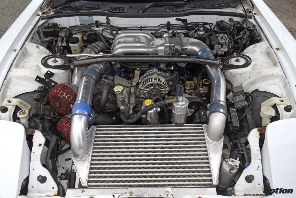 純正タービンは、シーケンシャル制御の切り替わりで起こるトルク変動(谷間)を嫌い、常時ツインターボ化。F-CON Vプロによる綿密なエンジンマネージメントを行うことで、全域トルクフルな360ps(ブースト圧0.9キロ時)のブーストアップ仕様を完成させている。
