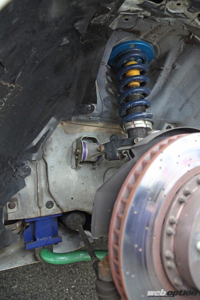 足回りは、ザックスベースのオリジナル車高調(FR16kg/mm)を軸にセットアップ。アームはトーコン以外は全て純正だが、全ブッシュをオリジナルのウレタンに打ち替えているのがポイント。ピロのようにボディに振動が伝わりにくいため快適性も高く、ゴムブッシュよりもヨレが少ないのであらゆるシチュエーションでしっかりとした接地感が生まれるのだ。機械式LSDは、ATSのカーボン2WAYを奢る。