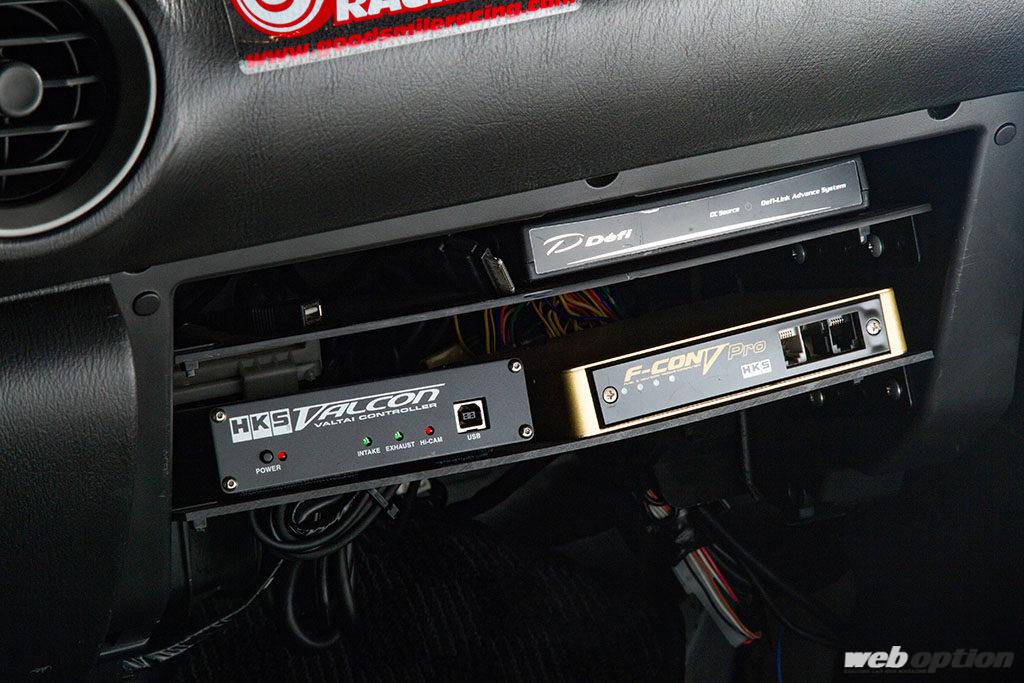 セッティングにはF-CON Vプロに加えて、吸気側のみに採用される連続可変バルタイ機構『AVCS』をコントロールするバルコンも使用。バルコンの効果は大きく、プリセット状態で装着しても低速の加速感が段違いに良くなるという。