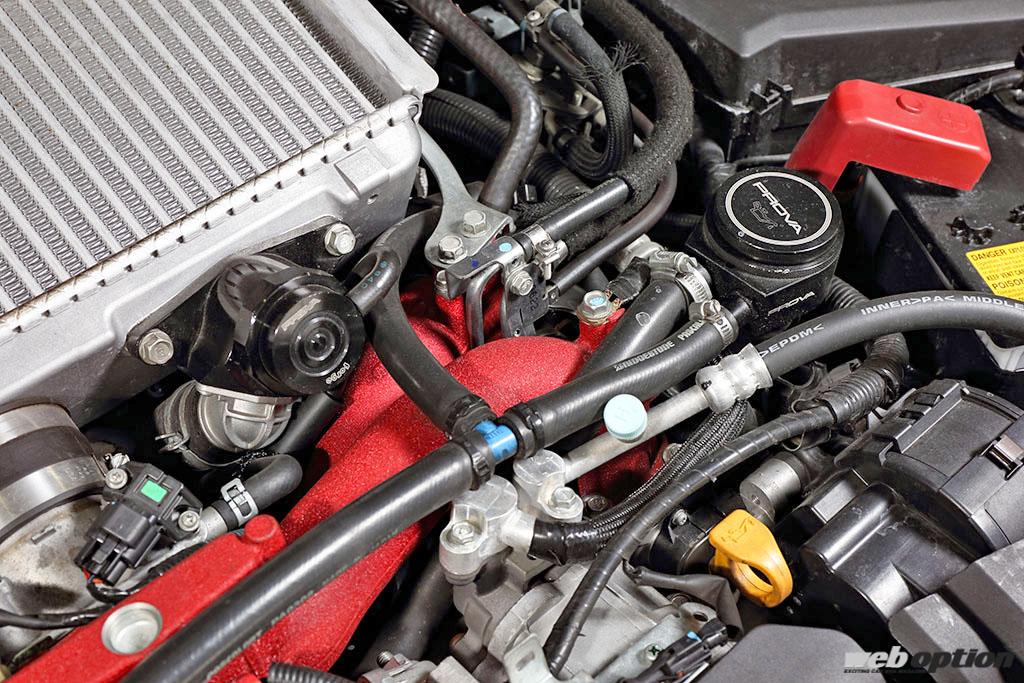 吸気系には、ターボレスポンスの向上やエアフロセンサーの計測空気量を安定させるハイプレッシャーバイパスバルブを装備。ブローバイのオイル成分のみをオイルパンに戻すことが可能な、オイルセパレーターもインストールされている。
