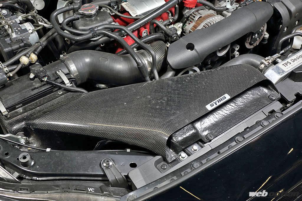 フレッシュエアを効果的に導入できる、シムス製のエアインダクションボックスもA3の推奨アイテム。性能はもちろん、その美しいカーボンの作り込みも素晴らしい。