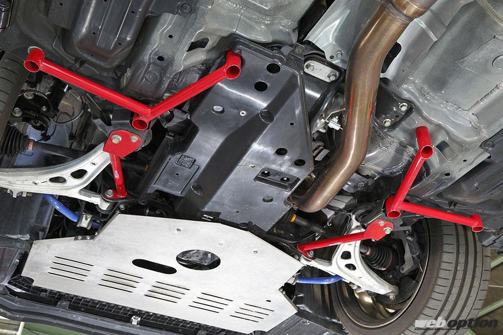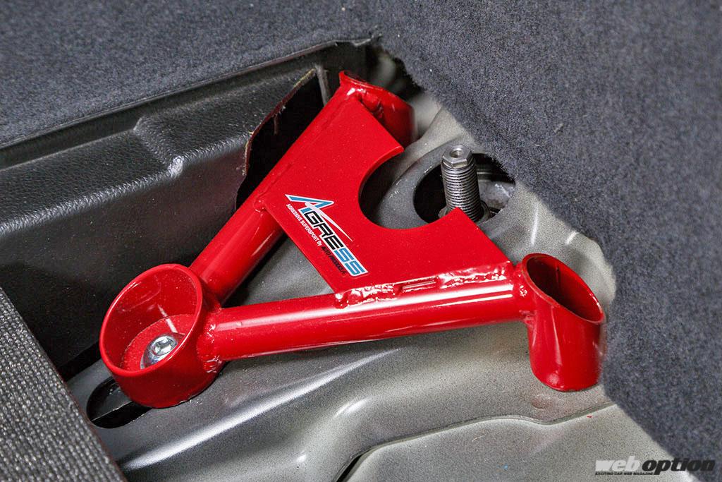 さらに、オリジナルのAGRESSボディサポートでシャシーとサスペンション取り付け剛性をアップ。キレの良い走りを生み出す原動力となっている。