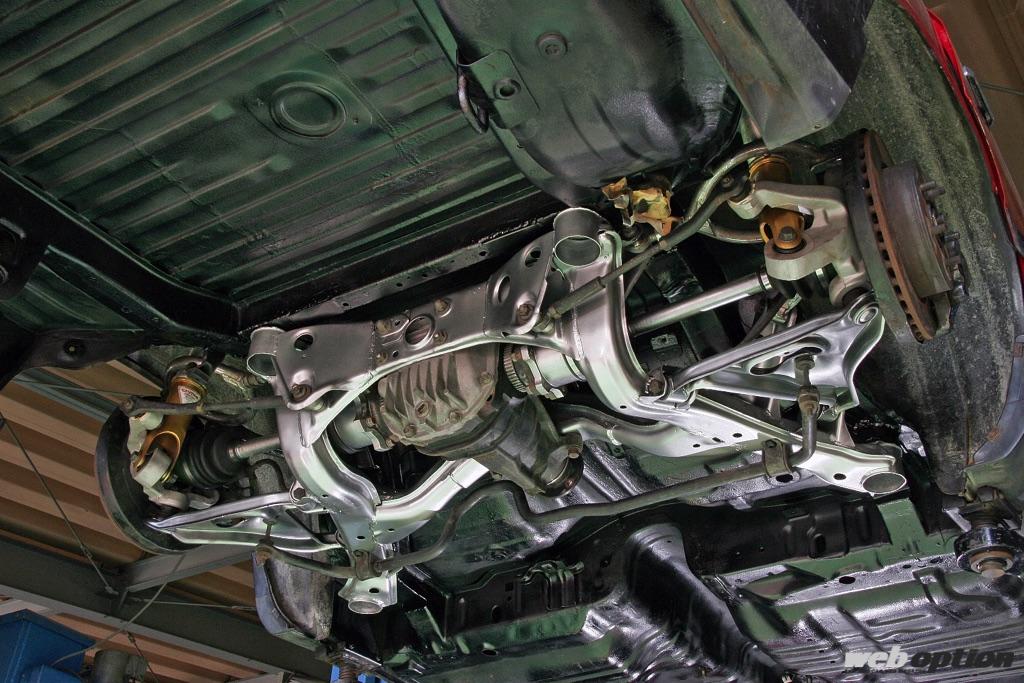一方、完成度80パーセントの足回りは車高調ユニットの加工に突入。ボディはDR30、フロント&リヤサスはRPS13、リヤナックルはBCNR33なので、各部の整合性を取る必要があるのだ。