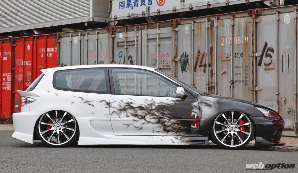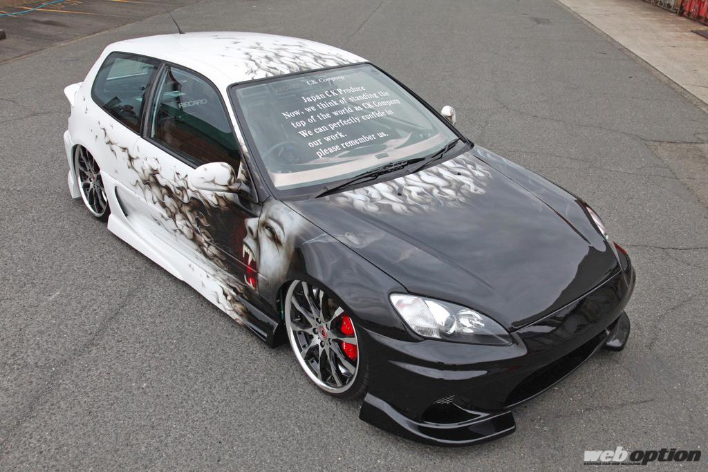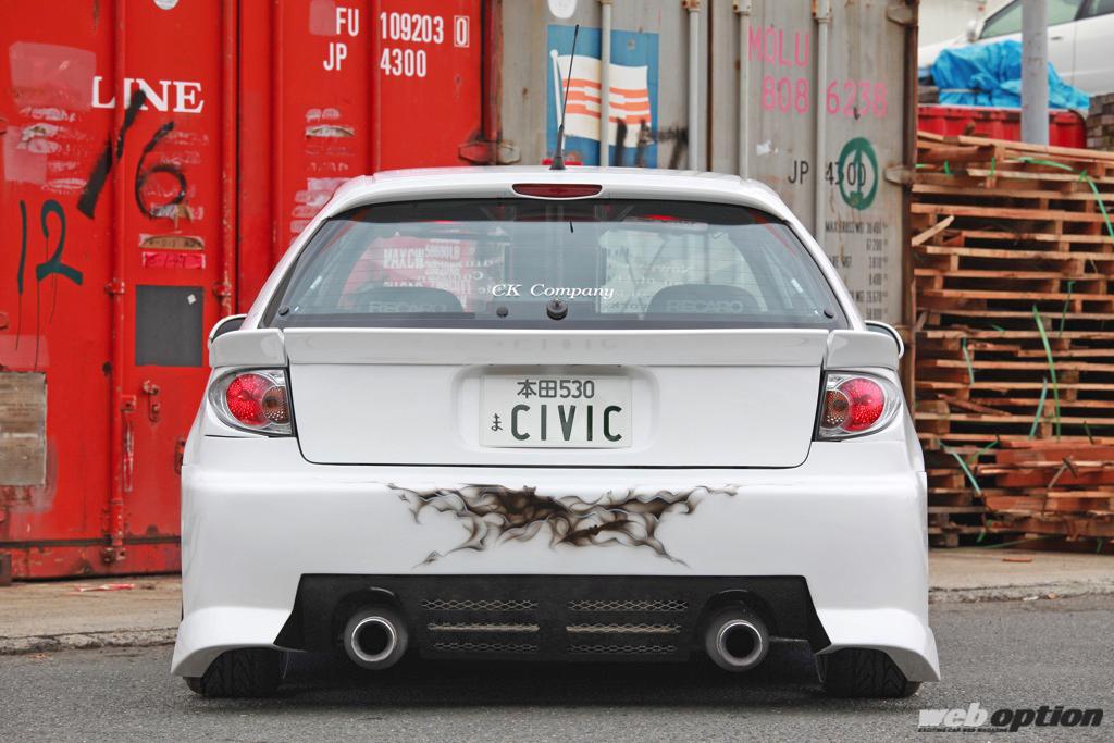 EG4シビックをベースにした超絶カスタムマシンの登場だ。シビックらしさを残しつつも、これまで見たことがない斬新なスタイリングを創出している。