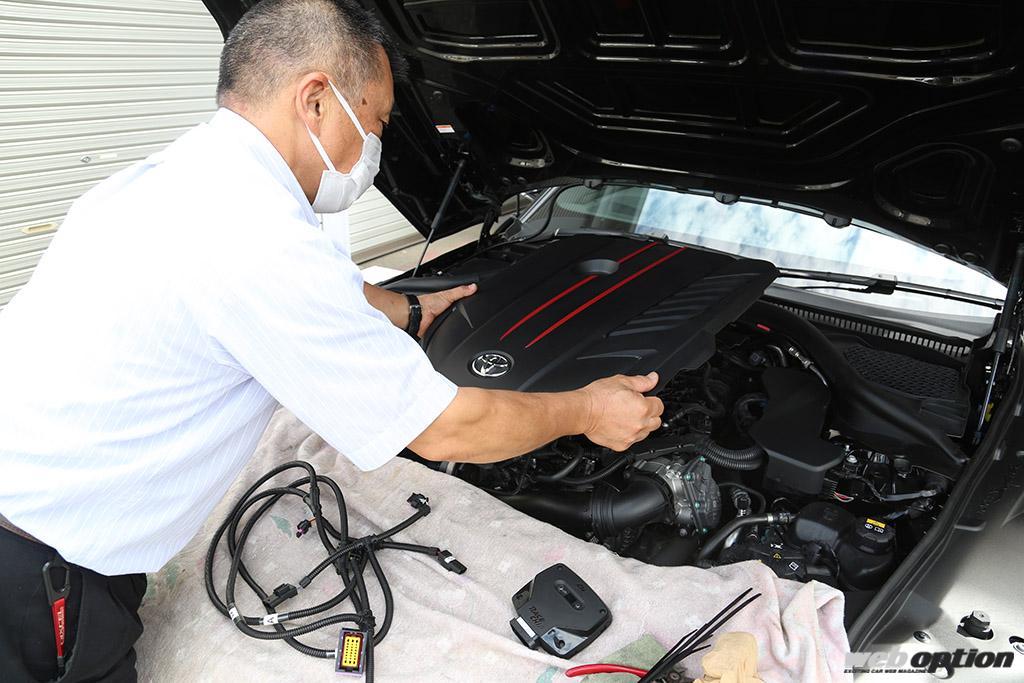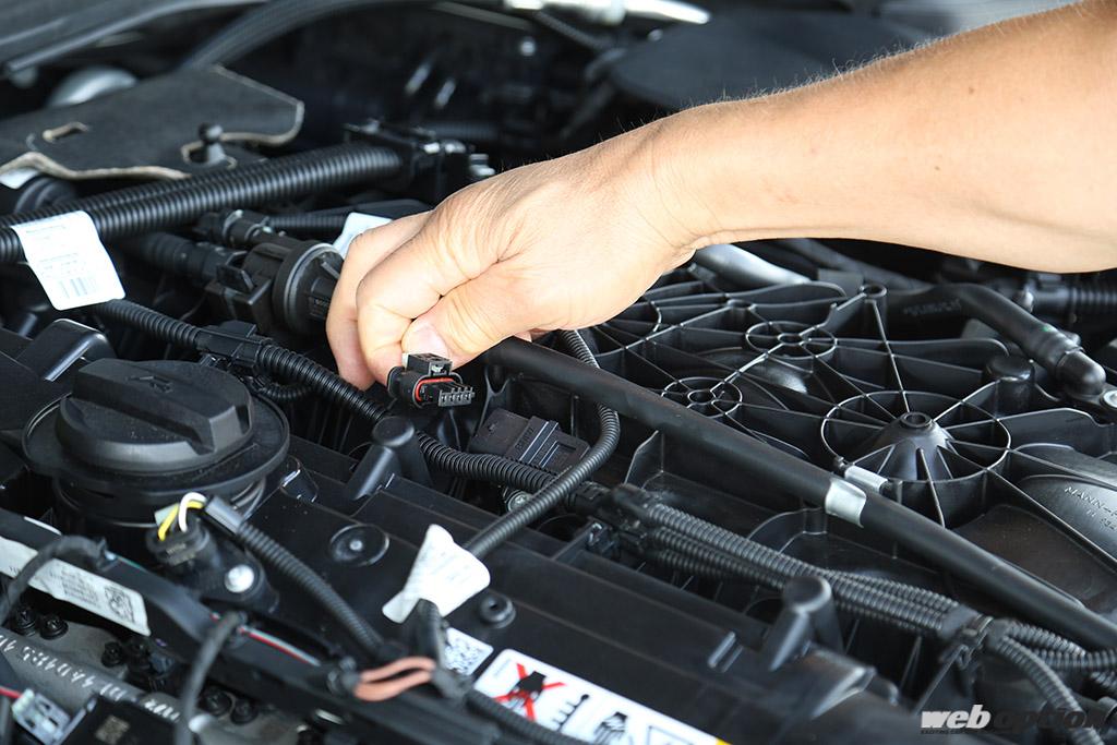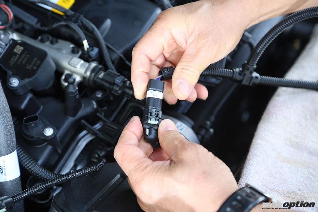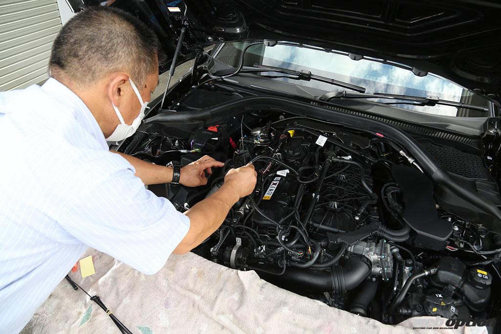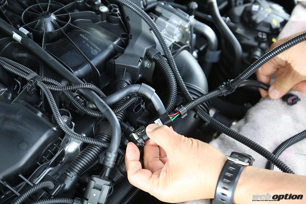取り付けはDIYでも十分に可能なレベル。まずはボンネットを開けてイグニッションキーをオフに。ドアロックをして15分以上放置する。これはECUのフォルト(自動回復)を防ぐために必要な作業だ。