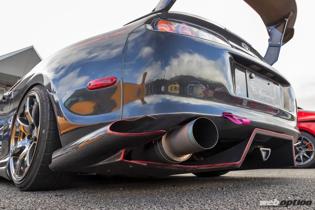 リヤバンパーは純正で、ランドのディフューザーとURASのボーテックジェネレーターを組み合わせる。ちなみに、このボーテックジェネレーターはリヤバンパーから飛び出すほどの大きさだったため、程よい長さでカットしているそうだ。