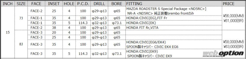 サイズは7.0Jと8.0Jの2種類で、それぞれのサイズにP.C.D114.3の5穴が1タイプ、P.C.D100の4穴が3タイプ、合計各4つのインセットを用意。一部のサイズはシビック用ビッグキャリパーに対応しており、その部分でも本気ユーザーに寄り添っている。
